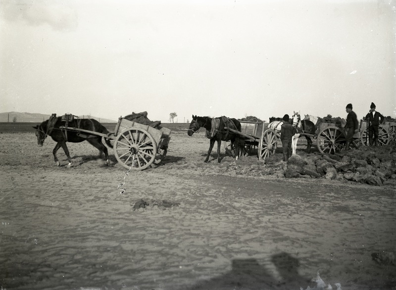 Fortepan / Magyar Műszaki és Közlekedési Múzeum / BAHART Archívum, lovas kubikos kordélyok a balatonföldvári strand építésénél.