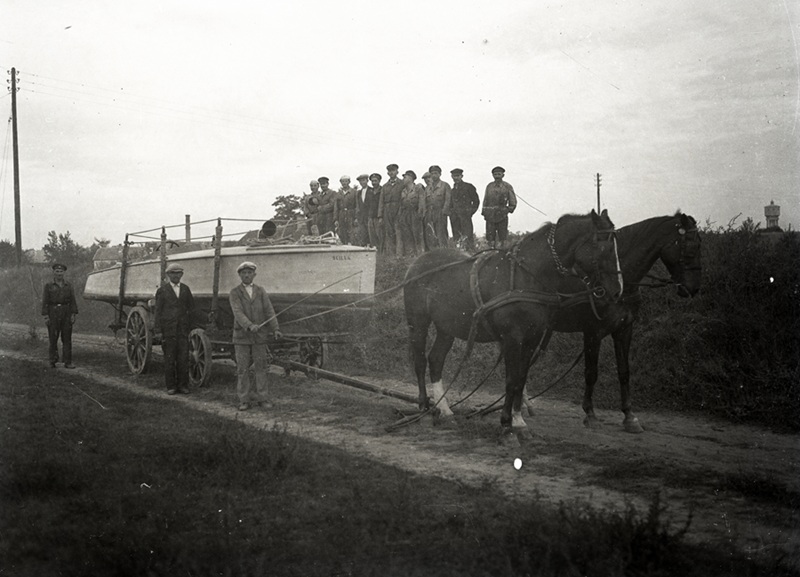Fortepan / Magyar Műszaki és Közlekedési Múzeum / BAHART Archívum, A Sió mentén szállított SCILLA motorcsónak átszállítása a Balatonra.